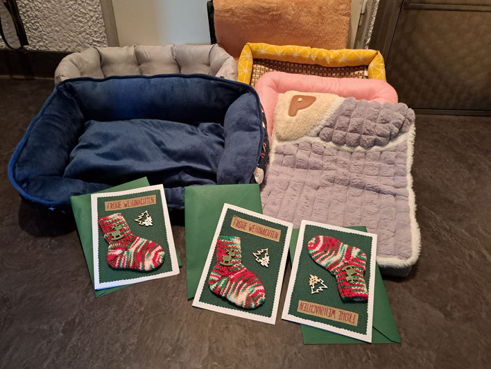 Beate und Ralf für die selbstgemachten Geldgeschenk-Karten sowie die gebrauchten Hundebetten