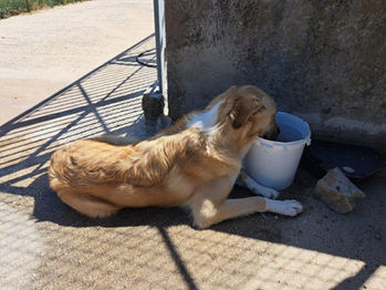 Schon im vorderen Teil des Geländes hielten sich einige Hunde auf, die sich dort frei bewegen konnten und regelmäßig von Soula und und ihrem Mann (unter anderem mit dem Futter unserer regelmäßigen Transporte) gefüttert werden.