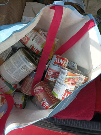 Ebenfalls während unseres Urlaubs erreichte uns eine Nachricht von Roswitha, dass wieder eine Menge Futterspenden auf uns warten würde.