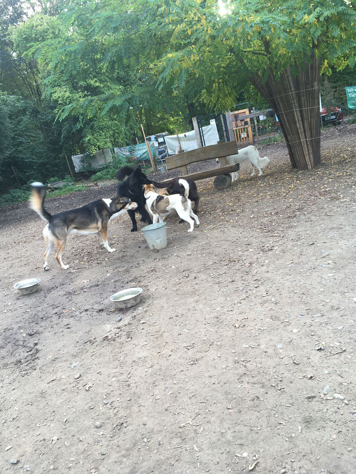 Am nächsten Tag hat sie dann erst einmal eine ausgiebige Dusche genossen, sich beim ersten Bürsten von sehr viel Fell verabschieden können und den Tag mit Finn, Byron, Toffee und Karlchen verbracht.